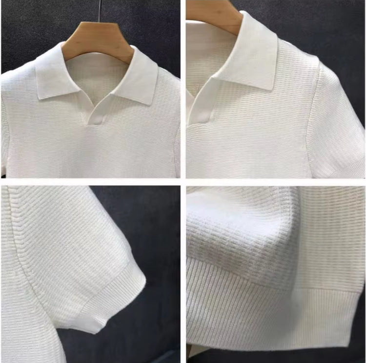 Lightweight Knit Polo in Elegant Sand Color for Men