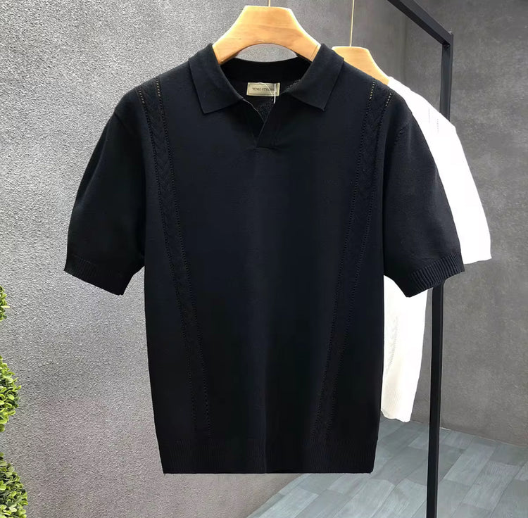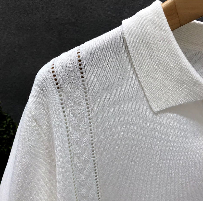 Almira gebreid poloshirt met korte mouwen voor heren - verticaal geribbeld patroon - comfortabel en stijlvol voor dagelijks en slim - casual kleding