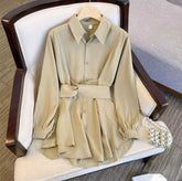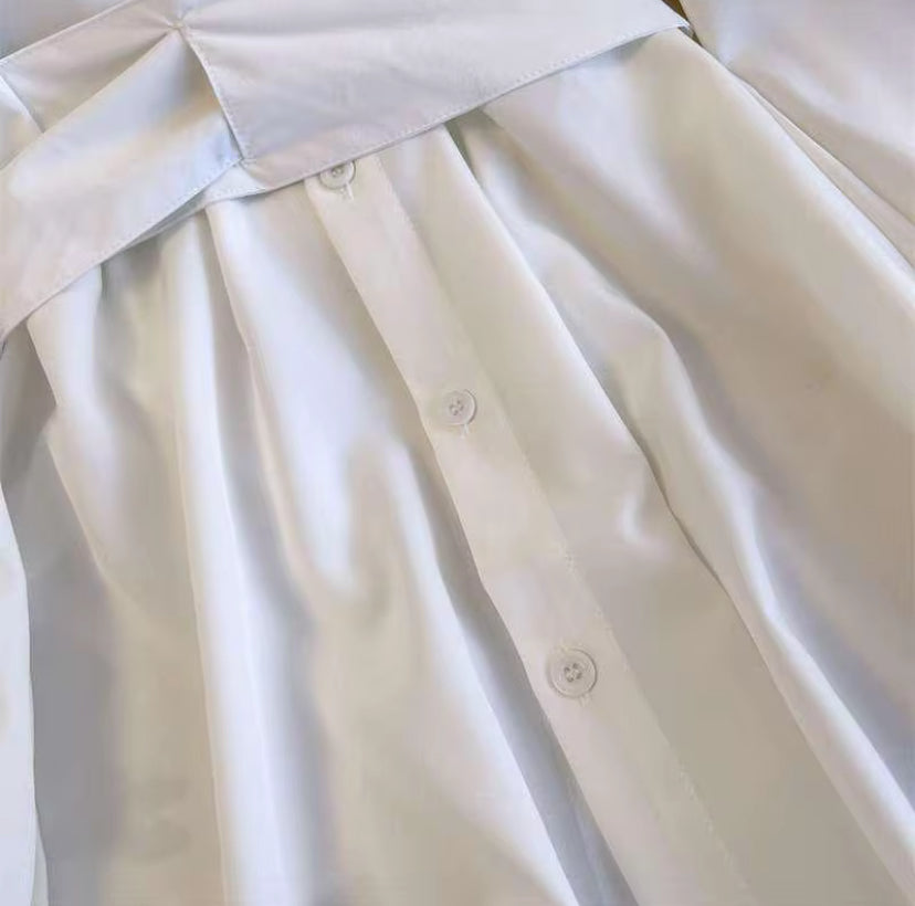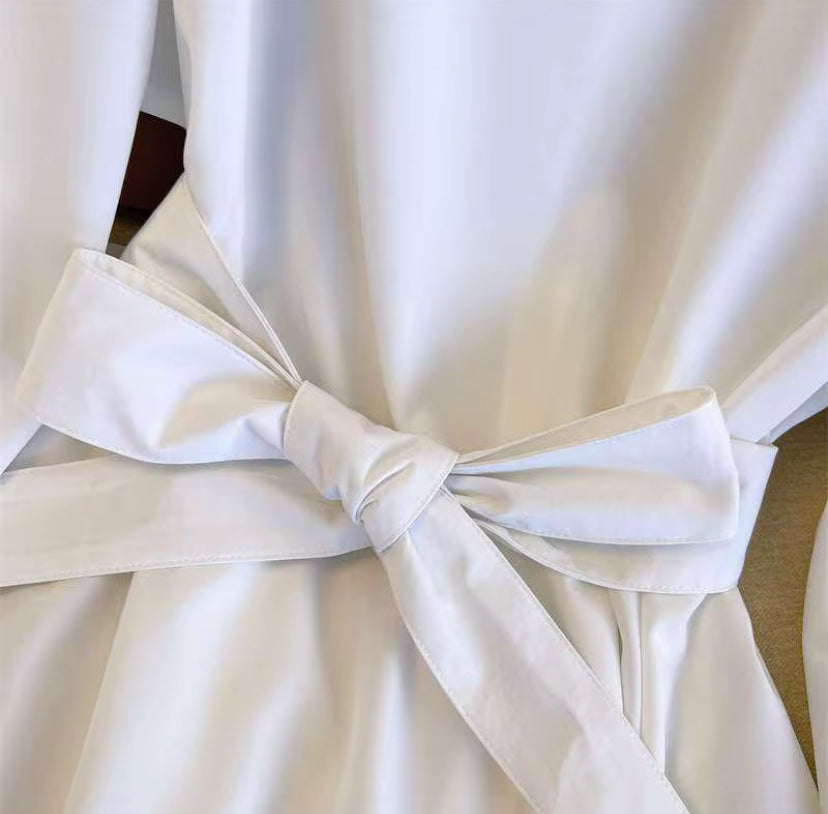 Het oogpunt van het ontwerp is de striksluiting rond de hals, die op verschillende manieren gedragen kan worden — losjes geknoopt voor een nonchalante look, of netjes gestrikt voor een meer geklede uitstraling.
