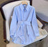 Een elegante damesblouse met strik is een stijlvol en verfijnd kledingstuk dat moeiteloos klasse en vrouwelijkheid uitstraalt. De blouse is gemaakt van een soepele, lichtvallende stof die zacht aanvoelt en mooi meebeweegt met het lichaam.