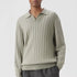 Geef je outfit een stijlvolle upgrade met deze moderne ribgebreide sweater. De sweater heeft een subtiele verticale structuur die zorgt voor een verfijnde en slankmakende look. Het ontwerp wordt afgewerkt met een klassieke kraag en een V-halsopening, waardoor het een perfecte balans vindt tussen casual en chic.